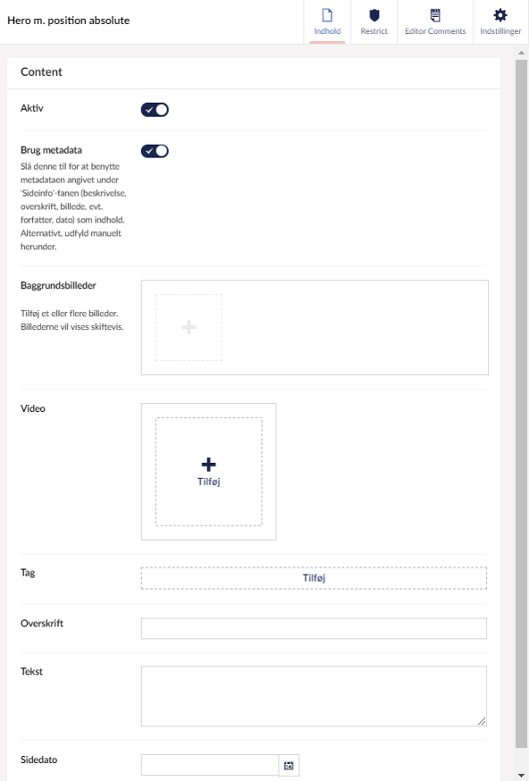 tilføj indhold i 'Tekst'-komponenten