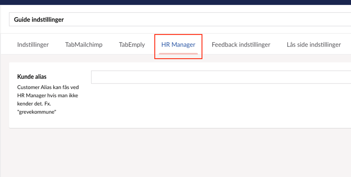 Her indtaster du dit kundealias til din HR-Manager-konto.