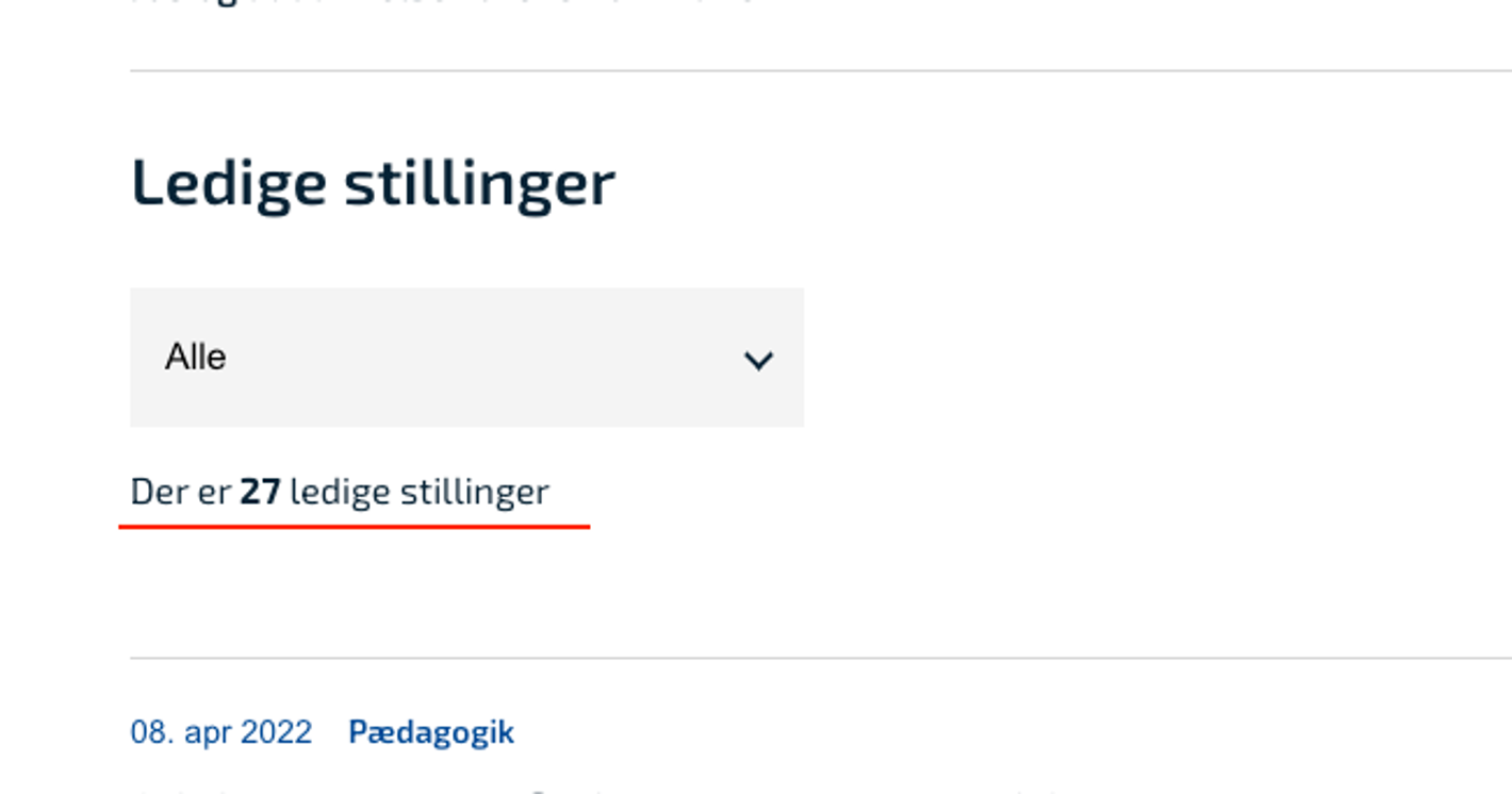 - Skriv teksten under søgningen, der fortæller antallet af resultater (antallet varierer, så skriv # hvor antallet skal være i sætningen)
