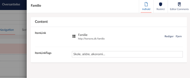 Under navigation skal du vælge hvilken menu-type du ønsker at arbejde i. Ved at trykke på tilføj indhold, vil du finde følgende muligheder. Her vælges Fanemenuen