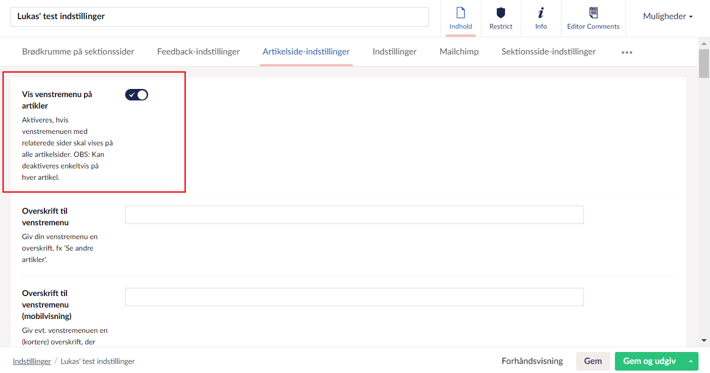 Her kan du vælge en standardbeskæring af artiklers topbilleder (billede indsat under fanen 'Sideinfo').