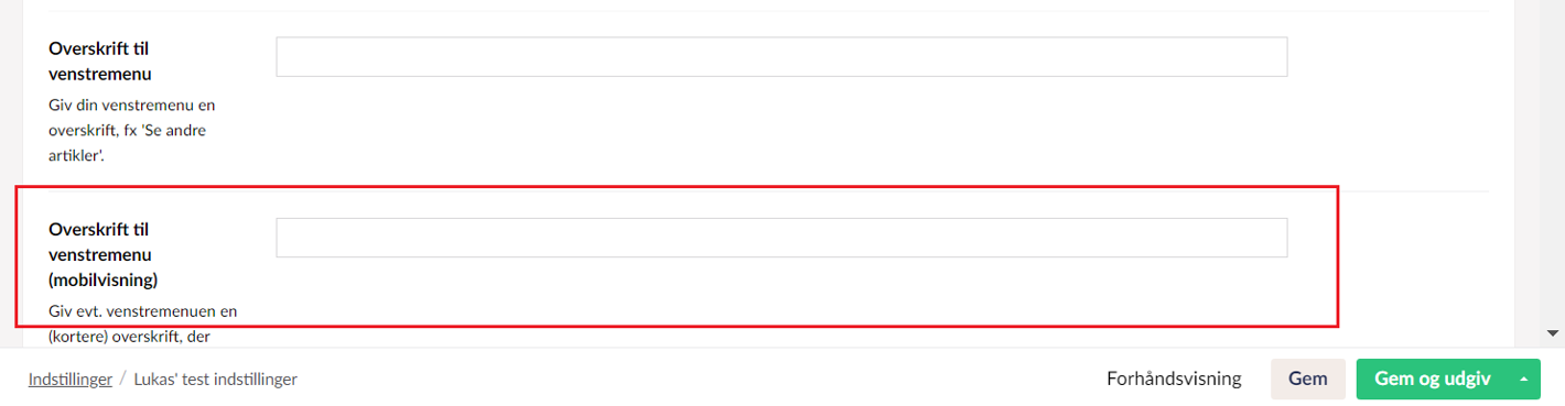 Her kan du indstille, hvordan datoer skal vises på dine artikelsider. Du indsætter blot et eksempel på, hvordan datoen skal vises, som for eksempel dd.mm.yyyy eller mm.dd.yy.
