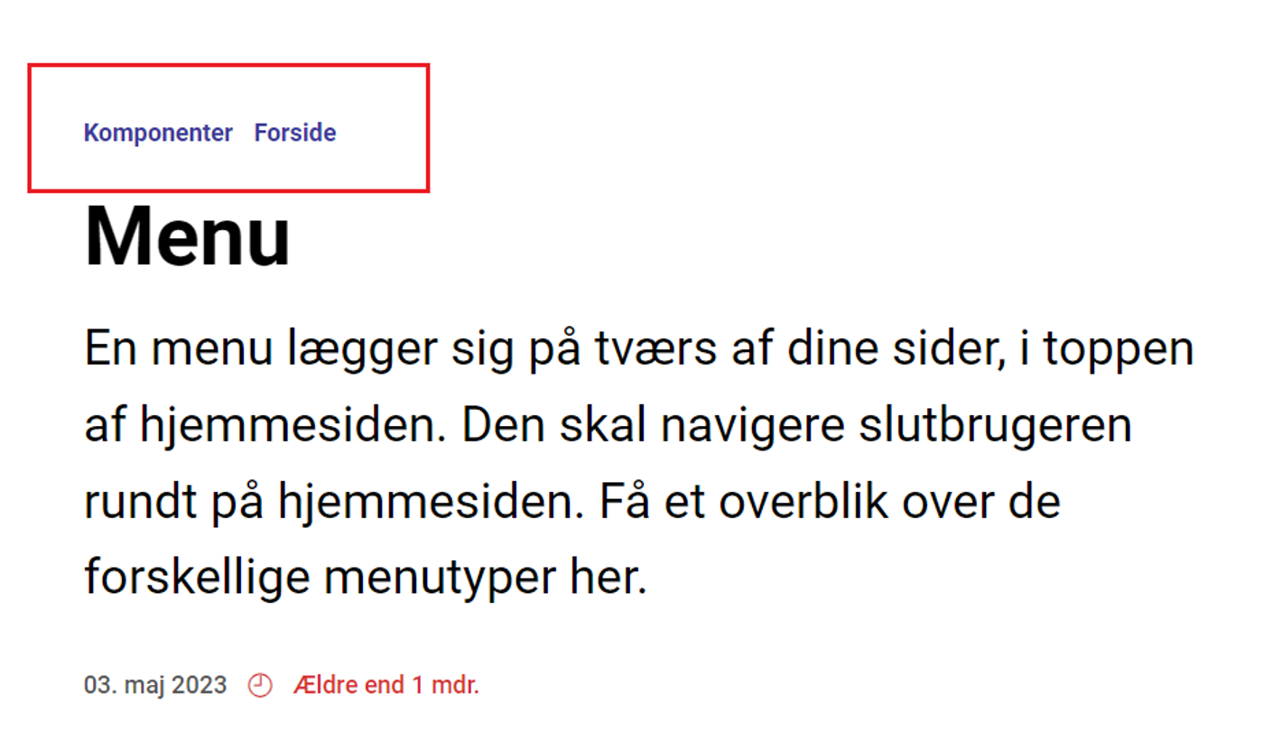 Du kan ændre hvor datoen vises ved at ændre hvor byline vises. (Gå til punktet 'Byline' på denne side for at læse mere)